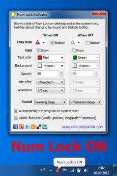 Keywords: numlock, num lock, num, keyboard, indicator, software Many laptops and wireless keyboards either don't have any indicator for Num Lock or have it located in an inconvenient or hidden place, under a hand for example. So knowing the actual state of Num Lock, especially after accidental key pressing is a huge problem! Num Lock Indicator software offers two Num Lock state indicators: Tray Icon and On-Screen Floating Text. Notifications by sound are also available. Moreover, sound alerts can be different for On and Off states. The product is distributed on the Try Before You Buy model with 30-day trial period. The license costs $5.95 per computer or user. There is a volume discount.