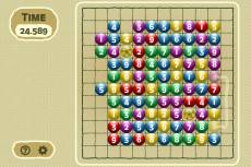 Keywords: 足し算, 計算, ボール, 曲げる, 計算する, カスケード, 色, マス, 線, マッチする, 数字, 操作, ペア どのくらい速く、やんちゃな双子をおとなしくさせることができるかな?このゲームでは足して10になるボールのペアを作って消していきます。ゲームが始まると1から9までの数字の書かれたボールがマスを埋めます。足して10になるボールを他のボールにブロックされないように2つ選んでクリックしますが、ボールをつなげる線は2回までしか曲げられません。選んだボールをキャンセルしたいときは、そのボールをクリックして別のボールとペアにすることができます。2つのボールを星マークのボールとつなげると、全てのボールが色別に並び変わります。左上にあるタイマーは経過時間を表示しています。ゲームに時間がかかりすぎると点数がもらえません。....................................................................................................................................................................................................