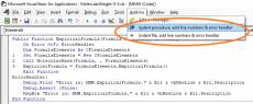 Keywords: فيجوال, بيسيك, ماكرو, أفيس, ورد, أكسس, اكسس, اكسل, إكسل, برمجة, برمجه, كود, مساعد, تنسيق, أرقام, ارقام, رقم, نص, كتابة, كتابه, وزن, مولي, جزيئي, كتلة, كتله تنسيق كود ماكرو لبرامج أوفيس وإضافة معالج أخطاء وتحويل الرقم إلى نص مع تمكين استخدام بعض خصائص الدوت نت في في ماكروات فيجوال بيسيك للتطبيقات مع برامج الأوفيس ورد - إكسل - أكسس - بور بوينت لاستخدام البرنامج - حمل البرنامج ثم قم بتنصيبه - افتح ملف مايروسوفت أوفيس يحوي ماكرو - قم تبحرير الماكرو بواسطة محرر الماكرو - من القائمة Add-Ins اختر أضف معالج الأخطاء للاجراء الحالي أو لكامل الملف كم ايمكنك تفعيل التنسيق التلقائي أثناء كتابة الماكرو يوفر هذا البرنامج العديد من الخصائص الاضافية حيث يمكنك تحويل الرقم إلى نص عن طريق دالة مخزنة مسبقاً كما يوفر امكانية العديد من خصائص الدوت نت في ماكروات الأوفيس توجد العديد من الأمثلة في الملفات المرفقة مع البرنامج