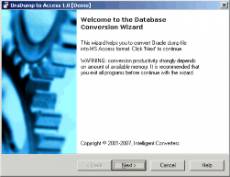 Keywords: convert oracle dump to access, oracle to access converter, oradump, migrate oracle to access, ord2acc, oracle2access, oracle to access conversion, oracle to access migration, command line, database, server, automate conversion OraDump-to-Access is a program to convert Oracle dump files into MS Access databases. Key features: (1) all versions of Oracle dump files are supported; (2) converts multi-file Oracle dump files; (3) converts indexes with all necessary attributes; (4) option to convert individual tables; (5) option to merge Oracle data into an existing MS Access database; (6) stores conversion settings into profile; (7) command line support; (8) easy-to-use wizard style interface