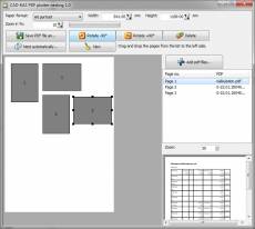 Keywords: pdf, plotter, nesting, place pages, nest pages, pdf nesting Many cheap plotters cannot do the nesting itself. So if you do not want to change the paper formats constantly then you produce a ton of waste paper. In order to allow also cheap plotters to do the nesting there finally is this new program: First you select the paper format. Then you can read in one or many pdf files. You can now place and position the pages of the pdf files on the selected paper format. You can rotate the pages in 90 degree steps. The positioning and rotation can be repeated if needed. You can read in additional pdf files which can be positioned additionally until the selected paper format is used optimal. Now the result can be saved as new PDF file.