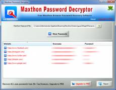 Keywords: maxthon password, maxthon password recovery, find maxthon password, maxthon password tool, recover maxthon password, lost maxthon password, maxthon password Maxthon Password Decryptor is the FREE software to instantly recover all your website login passwords from Maxthon browser It automatically detect the default Maxthon password file for the current user and displays all the stored login passwords in clear text after decrypting them. Here are the key benefits, * Instantly decrypt and recover stored encrypted passwords from Maxthon Browser * Automatically detect password file (mxpwd.dat) location * Recover all the passwords stored in Maxthon encrypted storage * Save the recovered website password list to HTML/XML/TEXT/CSV file * Easier and faster to use with its enhanced user friendly interface. * Integrated Installer for local Installation & Uninstallation. Maxthon Password Decryptor works on wide range of platforms starting from Windows XP to new Windows 10 version. Now you can recover ALL your passwords from 20+ browsers, Download our PRO Edition now https://xenarmor.com/browser-password-recovery-pro-software/