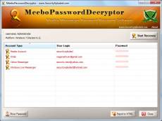 Keywords: Meebo password recovery, Meebo password, Meebo password crack, hacking Meebo password Meebo Password Decryptor is the FREE software to instantly recover all the messenger account passwords stored by Meebo Notifier. Meebo is one of the popular online messenger which provides one point of access for various messenger services such as Gtalk, AIM, Yahoo, Windows Live etc. Meebo Notifier is thin desktop client which allows the user to keep track of notifications on any of the messenger service from their system. Meebo Password Decryptor helps in recovering all these messenger account passwords previously stored by Meebo Notifier. Current version supports recovery of following messenger accounts, * Meebo Account * AIM * Yahoo Messenger * Windows Live * GTalk * ICQ * Jabber * Myspace Meebo Password Decryptor presents both GUI interface as well as command line version, the later is more helpful for Penetration testers in their work. Even Forensic officials find it useful to get hold of any stored account passwords by Meebo. Meebo Password Decryptor works on most of the Windows platforms starting from Windows XP to latest operating system, Windows 10
