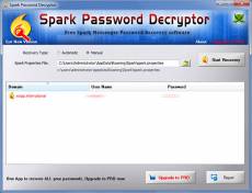 Keywords: spark password, spark password recovery, find spark password, spark password tool, recover spark password, lost spark password, spark messenger password Spark Password Decryptor is a free software to instantly recover your login password for Spark Messenger Spark Messenger stores the login password so that user don't have to enter it every time. Spark Password Decryptor can help you recover this encrypted login password. Here are the key benefits, * Instantly recover login password of Spark Messenger * Back up the recovered Spark password list to HTML/CSV file * Easier and faster to use with its enhanced user friendly GUI interface. * Useful for IT Administrators, Penetration testers as well as Forensic investigators. * Support for local Installation and uninstallation of the software. Spark Password Decryptor works on most of the Windows platforms starting from Windows XP to Windows 10 version.