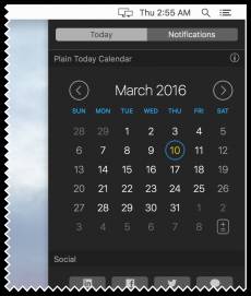 Keywords: calendar, today, widget, day, month, year, weekday, week, dashboard Plain Today Calendar application provides Notification Center Calendar Widget for your Mac (with additional features) When you click on a day on the calendar, either - the installed OS X application calendar will be launched for that date; or - the date will be copied to the clipboard. These actions can be adjusted in Preferences. Additional features include: - the Basic Date Calculator, which allows users to add or subtract periods of time from certain dates and includes a business-day counter; and - the Date Difference Calculator.