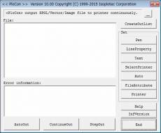 Keywords: PDF, HPGL, IMAGE, VIEWER, PloComp, PloView, PloCon, DXF, DWG, GERBER, TIFF, JPEG, BITMAP, IGES, EMF, PCX, FPX, PNG PloCon is program which carries out continuation output of the drawing of HPGL/Vector/Image file at Windows printer, and there are the following functions. It does not give displaying. (1) Paper and output scale - Specify fixed form paper, and carry out automatic scaling so that paper size may be matched. - Specify fixed form paper and output with designation scale. - Select fixed form paper automatically with designation scale. It is automatic selection about fixed form paper and direction of the optimal printer matched with drawing size which applied scale to drawing area. (2) Output from interactive output and other applications. (3) Color and width change of line, whole drawing black and white / color change, background color change, pen ON/OFF (4) Vector font / TrueType font change of character font (5) Multi-page correspondence (6) Support to many input file formats PDF,HPGL,HP-GL/2,HP RTL,DXF,DWG,IGES,SXF,GERBER,NC-Drill,EMF,TIFF,JPEG,Bitmap,PCX,FPX,PNG (7) Output mode * Mode 1: Automatic output mode It will output, if specified output folder is supervised and PDF/HPGL/Image file enters in output folder, and PDF/HPGL/Image file after output is deleted automatically. When there is no drawing file, it waits until file comes. * Mode 2 : Continuation output mode Plural drawing files described in specified output list file are outputted continuously. * Mode 3 : Step output mode One file in plural drawing files described in specified output list file is outputted, and it waits for the next output directions.