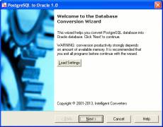 Company: Intelligent Converters Country: Russian Federation, Moscow ASP member: No Company Web site: https://www.convert-in.com Application info: http://www.convert-in.com/pgs2ora.htm Author: Oleg Fedorov Sales email: service@convert-in.com Support email: service@convert-in.com License type: Shareware Class: Business::Databases & Tools Specific: Business Categories: Platform: Windows OS: Win2000, WinXP, Win7 x32, Win7 x64, Windows 8, Windows 10, WinServer, WinOther, WinVista, WinVista x64 System requirements: PostgreSQL environment Language: English Limitations: Demo version converts only 50 records per table, it does not convert foreign keys and views