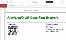 Keywords: QR-Code, QR Code barcode fonts, GS1 QR Code bar code fonts, AIM QR Code 2005, ISO/IEC 18004:2006, GS1 QR-Code PrecisionID QR Code Font Software simplifies generation of AIM QR Code 2005 and ISO/IEC 18004:2006 and GS1 QR-Code barcodes. The Download Demo zip file includes examples for Crystal Reports, Microsoft Access, Word and Excel that integrate specially designed font encoders to create scannable barcodes on Windows, Mac, Linux, Android, iOS and more platforms. Additional source encoders for the QR-Code fonts, such as C#, VB.NET, Java, C++ and SQL are available with any Developer Redistribution License.