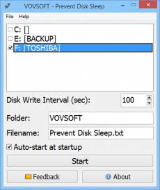 Company: VOVSOFT Country: Turkey, Turkey, Istanbul ASP member: No Company Web site: https://vovsoft.com Site of program: http://vovsoft.com Application info: https://vovsoft.com/software/prevent-disk-sleep/ Author: VOV SOFT Sales email: vov@vovsoft.com Support email: vov@vovsoft.com License type: Freeware Class: System Utilities::File & Disk Management Specific: Categories: Utilities :: File & Disk Management Platform: Windows OS: Win2000, WinXP, Win7 x32, Win7 x64, Windows 8, Windows 10, WinServer, WinOther, WinVista, WinVista x64 System requirements: Windows XP or later. Language: English, French, Turkish Limitations: No limitations.