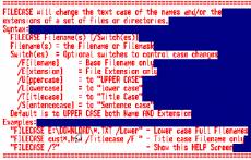 Keywords: Change text case filenames, change file extension case, make upper case, make lower case, sentence case, proper case, wildmask file matching, mass filename changes, recurse subdirectories FileCase.EXE is a Windows Console program designed to simplify mass changes to text case of the names and extensions of sets of files. FileCase is particularly useful for programmers, web designers and system administrators - who may have to enforce uniformity in the names or extensions of large groups of files to ensure that they sort correctly, or are correctly referenced in case sensitive operating systems and websites. FileCase allows you to:- * change file names, file extensions or both file names and extensions, * select multiple files matching a wildcard specification, * change names and extensions to UPPER case, Lower case, Title case, or Sentence case, * optionally include files in all subdirectories.