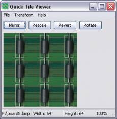 Keywords: image, viewer, tile, gif, jpg, jpeg, png, game, texture, tga, 3d QuickTileViewer is a tiled image viewer for textures that are intended for games and 3D graphics. It lets you quickly preview how PNG, TIF, XPM, BMP, ICO, PCX, TGA, and GIF textures will look in a tiled environment. Has printing support.
