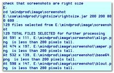 Keywords: rightsize, jpg, jpeg, gif, image, png, image size. width, height RightSize checks that .png, .jpg, .jpeg, .gif and .webp files are the size you expect. By that I mean the size of the images in pixels, not the size of the files themselves. In particular, you might use it to check that all your PAD icons are precisely 32x32, or to find all the very large or very large images in your collection. It will also check that files are consistent, e.g. that you have not stored a gif file with a png extension. You can check single files, list To check a single image file is between 32x32 and 64x64 inclusive , type: java.exe -jar C:\com\mindprod\rightsize\rightsize.jar 32 32 64 64 lemon.png You can also list several files on the command line: java.exe -jar C:\com\mindprod\rightsize\rightsize.jar 32 32 64 64 pear.jpg C:\mydir\peach.gif you can check an entire directory of files: java.exe -jar C:\com\mindprod\rightsize\rightsize.jar 32 32 64 64 . Sorry no wildcards, just . , and .. DON'T USE WILDCARDS unless you deeply understand how they work. Windows expands them, not rightsize, and feeds them to rightsize (or any other program) as a giant list of all the directories and files in the current directory. rightsize will thus tend process all the files in your directories, when you just meant to process the files in the current directory. The -s switch makes all subsequent directories searched recursively to include all their subdirectories. e.g. to check that all files in the diretory tree in in the size range 16x32 and 128x100 java.exe -jar C:\com\mindprod\rightsize\rightsize.jar 16 32 128 100 E:\mindprod If you have the jar extension set up as executable, you can abbreviate: C:\com\mindprod\rightsize\rightsize.jar 16 32 128 100 . will fix all *.html files in the mindprod directory tree, ignoring other types of files. If you have the jar extension set up as executable, you can abbreviate: C:\com\mindprod\rightsize\rightsize.jar .