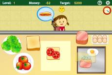 Lançant votre première sandwicherie, vous visez à offrir vos clients la meilleure nourriture et service en ville. Quand le jeu commence, un client arrivera à votre magasin et commandera un sandwich. Vous devez cliquer et traînez les ingrédients appropriées sur la zone de commande au milieu, commençant au fond du sandwich. Soyez prudent quand vous choisissez les ingrédients puisque chaque morceau d’entre eux coûte de l’argent, et un sandwich avec les mauvais ingrédients sera rejeté. Notez aussi que les œufs et les jambons ont besoin d’être cuits avant qu’ils puissent être mis sur le sandwich. Pour faire ainsi, cliquez et traînez la nourriture crue sur la casserole au coin droite inférieure, attendez alors jusqu’à ce que la nourriture soit prête, comme indiquée par une cercle. Cliquez et traînez le sandwich au client après vous avez fini la préparation pour recevoir l’argent. Un émoticône apparaîtra au-dessus de chaque client, reflétant le niveau de satisfaction. Si le client est satisfait avec l’efficacité de votre service, vous pouvez recevoir des pourboires supplémentaires. Chaque niveau a une somme cible de revenu comme montrée en haut de l’écran, tandis que l’horloge au coin droite supérieure affichera le temps restant du niveau actuel. Si vous ne pouvez pas gagner la somme exigée d’argent avant que le temps s’écoule, vous perdez. Développez votre prestige pour devenir la sandwicherie préférée des clients!