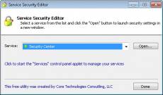 Company: Core Technologies Consulting, LLC Country: United States of America, CA, Oakland ASP member: Yes Company Web site: http://www.CoreTechnologies.com/ Site of program: http://www.coretechnologies.com/products/ServiceSecurityEditor/ Application info: http://www.coretechnologies.com/products/ServiceSecurityEditor/ Author: Core Technologies Sales email: info@coretechnologies.com Support email: info@coretechnologies.com License type: Freeware Class: System Utilities::System Maintenance Specific: Categories: Utilities :: Security & Encryption, Utilities :: System Utilities, Utilities :: Miscellaneous Platform: OS: WinXP, Win7 x32, Win7 x64, Windows 8, WinServer, WinVista, WinVista x64 System requirements: Windows XP or later; 1 MB hard drive space. Language: English Limitations: No limitations.