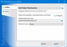 Keywords: free, freeware, outlook, add-in, add-on, folders, permissions Free tool for configuring Outlook folder permissions for selected users in bulk. This utility modifies or adds the permissions for the selected Outlook folders in Exchange Server and Office 365 mailboxes, as well as in Public Folders. It allows you to change the permissions for calendar, contact, task, email and other folders. You can set permissions for selected and anonymous users, as well as default permissions. Standard Outlook tools restrict the ability to edit folder access rights. You can configure permissions for one folder at a time only; there is no mass customization for many folders and users. Moreover, there is no way to set permissions using the command line or by schedule. The utility provides the flexibility when solving various tasks related to configuring Outlook, Exchange and Office 365 folder permissions. Simply select the folder, specify users, set permissions, and run the utility. When you configure the permission set, you can select the standard Outlook permission level or specify custom rights to read, edit, delete, create and others. Command line support allows you to use the utility in many scripts and scenarios. For example, as a migrations helper, to run by a schedule, to restore folder permissions backups, and for other tasks when configuring user access rights to Outlook folders.