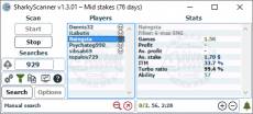 Keywords: poker, tool, auto-registration, waitlists, table select, SNG, Sit & Go, Spin & Go, MTT SharkyScanner is an automated table selection and automatic registration tool for Sit & Go, Spin & Go, and MTT players. This application is able to determine the strength of players in a tournament and automatically register you in tournaments by conditions you set. This tool saves your time because everything is automated and increases your ROI/ITM as you table-select and play just the games you like and avoid low or negative EV games. We are 100% sure that SharkyScanner will pay for itself in a very short time and will start to produce more profit to you independently of your current game skill.