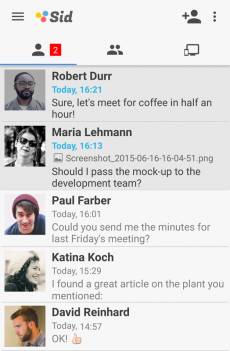 Keywords: free, team, communication, messaging, chat, end-to-end, encryption, file, transfer, social collaboration, group, mobile, desktop, secure, privacy, crypto Sid is an End-to-end secure teamwork tool to make your team communication safer, simpler and more efficient. Connect with your team members and keep everyone on the same page. Fast communication - one-to-one or within groups Set up your team easily and start right away with secure messaging and file transfer. Use it for private and team communication. Team contacts are exchanged with every new team member automatically. Sid comes with structured communication in dedicated channels: Organize your team conversation and customize it to match your personal needs. Available for mobile and desktop devices Sid clients are available for desktop computers, laptops and as native apps for iOS and Android. You can use it on any operating system like your computer in the office or on your smartphone anywhere else. Whatever you do on one device is reflected on all other devices, so everything is kept in sync. Security by design Sid uses end-to-end encryption for every message and file transferred. The encryption keys are generated and stored on your devices only. Unlike other password driven systems, your private key is used for authorization and authentification. When working with Sid, your data is safe and no third-parties can decipher the data while being transferred. No one will be able to read your messages or decrypt your files. We only support clients that run on your device natively to ensure maximum security. Peer-to-peer and local file transfer Sid is using a decentralized peer-to-peer technology to transfer data without uploading to a server or cloud. Your data is routed the fastest possibe way without taking detours and will use the local network if applicable. Exchange files of any kind and size with individuals, teams and external contacts.