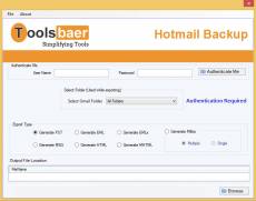 Company: Toolsbaer Country: United Kingdom, Redhill, Rutland Close ASP member: No Company Web site: http://www.toolsbaer.com/ Application info: http://www.toolsbaer.com/hotmail-backup/ Author: Dan Mark Sales email: pad@toolsbaer.com Support email: pad@toolsbaer.com License type: Shareware Class: System Utilities::File & Disk Management Specific: Categories: Utilities :: System Utilities, Utilities :: File & Disk Management, Internet :: Email, Internet :: Tools & Utilities Platform: Windows OS: Win2000, WinXP, Win7 x32, Win7 x64, Windows 8, Windows 10, WinServer, WinOther, WinVista, WinVista x64 System requirements: Pentium II 1 Ghz, 1GB RAM, Minimum 512 MB Space Language: English Limitations: export only first 10 items from each folder