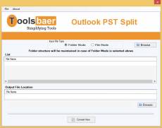 Keywords: pst split, splitter pst, divide pst tool, split pst tool, free split pst, outlook pst splitter, download free pst splitter, separate pst The ToolsBaer PST Split Tool can efficiently PST file into the divided format. Divide large PST without installing MS Outlook. There is an option for allowing us to take the selected file folders inbox, outbox, drafts, deleted items, etc. and divided into a selective folder of PST using PST Splitter format. The users can split the PST file based on size and save the outlook file at a desirable destination. The PST Splitter Tool supports archive Outlook files without any difficulty. Outlook data file using this software, therefore large PST files can be split into parts. To save the outlook file after splitting, users can easily create a new folder and save the PST file. The tool includes only 4 steps for dividing the file. The software provides different splitting options such as date, size, the folder users can split ANSI & UNICODE both type PST files as per your choice and set a split password for protected PST files effortlessly. Users can also take a free demo version for examining its features and how it works and Display the complete PST file earlier to splitting. Download the ToolsBaer PST Split Tool best-divided program. This utility efficiently divide any large-size PST files.