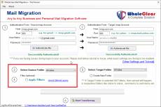 Keywords: Mail Migration Tool, IMAP Migration Tool, Mail Migration Software, IMAP Migration Software, Migrate IMAP Emails, IMAP Migration WholeClear Mail Migration Tool is designed with a smart interface and performs smooth migration of emails between IMAP Server accounts. Fast and 100% error-free migration of emails between IMAP Mail server accounts is done by the software. You can easily export one cloud account emails to another cloud in a few minutes using this powerful application. All IMAP Server enabled accounts are considered by the application that includes business as well as personal accounts such as Gmail, Hotmail, G Suite, Office 365, Yahoo, Outlook.com, Rediffmail, Roundcube, etc. You are asked to provide both source and targeted IMAP account login information to complete the migration. For helping you in performing the migration, a user guide is available or you can ask our technical support team for your doubts. All email properties and Meta details like to, cc, bcc, from, sent, date, time, subject, hyperlinks, signatures, images, attachments, etc. are fully preserved during the migration. No third-party app installation is required to migrate IMAP account emails to another IMAP account. The software has been well-tested by professionals so there are no chances of data loss and file corruption at all. WholeClear Mail Migration Tool can be comfortably installed on all Windows operating systems. No matter whether you have the latest Windows 10 or older version of Windows installed on your system. The software is affordable for all users. You can simply migrate desired mailbox folders from one cloud account to another cloud. Or by choosing date-based filter, you can easily filter items of a particular data and migrate them easily. To know the software in detail, download freeware edition and get a close examination before you apply for the license edition. With the demo edition, only 25 emails are migrated from one IMAP Server to another IMAP Server.