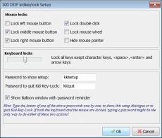Company: 100dof Country: Greece, Crete, Heraklion ASP member: No Company Web site: http://www.100dof.com Site of program: http://100dof.com/windows/kid-key-lock Application info: http://www.100dof.com/products/kid-key-lock Author: Haris Baltzakis Sales email: haris@100dof.com Support email: haris@100dof.com License type: Freeware Class: Security & Privacy::Other Specific: Categories: Security Tools :: System Lockers, Security Tools :: PC Access Control, Utilities :: Miscellaneous, Home & Hobby :: Kids & Parenting, Home & Hobby :: Misc. Home Platform: Windows OS: Win2000, WinXP, Win7 x32, Win7 x64, Windows 8, Windows 10, WinServer, WinOther, WinVista, WinVista x64 System requirements: Windows OS, keyboard, mouse Language: English Limitations: No limitations