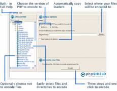 Keywords: php encoder, encrypt php, source code protect, php protect, php encode, intellectual property protection, php security phpSHIELD has been developed to help software authors, freelance developers and anyone publishing scripts to protect their intellectual property with ease. Developers working on freelance projects do not have to give away all of their legacy code during a project - phpSHIELD will allow them to protect the elements at they do not want the client to have full access to. Software authors can release their scripts without the fear of losing revenue from piracy. Why not try out our easy-to-use windows application today and you can begin protecting your scripts immediately. Encrypted and protected code works under Windows, Linux and now Mac OS X. Your encoded scripts will work with no changes to the default installations of PHP. Features: - Fully native byte code encoding: Native encoding to fully protect your application - PHP5 and PHP4 support: Both PHP5 and PHP4 support built in to the encoder and loaders - Fast encryption: Powerful and fast encryption to protect your files - Easy to use: A simple and easy to use interface. Three steps and your files are protected - Windows encoding client: Simple and easy to use Windows client encoder - Linux ready loaders: Linux ready loaders for running protected scripts - MacOSX ready loaders: MacOSX support. We support php under Mac OS X - Protect your intellectual property: Protect your intellectual property. Protect your php source code. Peace of mind for only $99